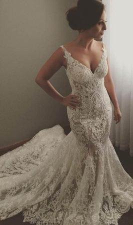 This sleeveless v-neck wedding dress was made with a very intricate #lace and embroidery detail. You can have this #bridal #design remade as pictured or with any changes. We are in #DallasTx but offer #bespoke #wedding #dresses to #brides all over the globe. For more info on #custom or #inspired #weddingdresses please contact us directly.