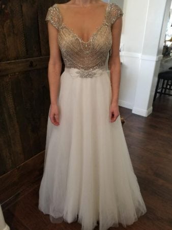 beaded cap sleeve bridal gown with a-line cut