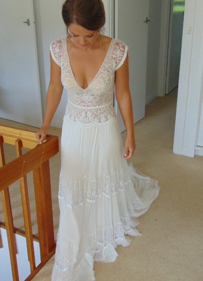 This cap sleeve a-line gown has a deep #sexy v-neck line. Have this #elegant #bridal #dress remade as shown or with modifications in any size. We also make #bespoke made to order #wedding #dresses. We can use any picture you have as inspiration for a #replication or #custom #design. For more info on #couture #weddingdresses please contact us directly.
