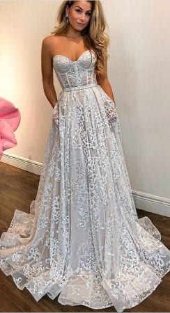 This strapless bridal gown has a #beautiful #lace pattern of #fabric moving throughout the #dress #design. We have many corset wedding dresses in our catalog. We can also make #besoke #wedding #dresses based on any pictures you #love as inspiration. So making #replicas of #hautecouture #weddinggowns for less than the original is not an issue. For pricing and more details on #custom #weddingdresses please contact us directly.