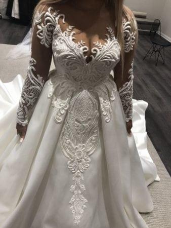 This long sheer sleeve wedding dress has a large ball gown skirt. This #style woudl be great on a #plussize #bride too. Have this #weddinggown remade as shown or with changes to t he #design. You can also email us #pics of your dream #weddingdress and we can replicate it for you for a lower cost. Get pricing on any of the #weddingdresses you #love when you email us directly.