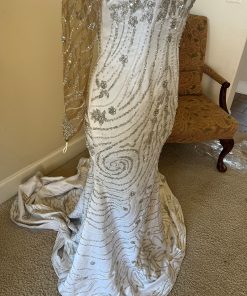 This bling beaded design can be created as pictured or with any design changes. Our US design firm also is able to make replications of any design you love using your photos as inspiration. For more info on sheer long sleeve bling beaded wedding gown options please email us directly.