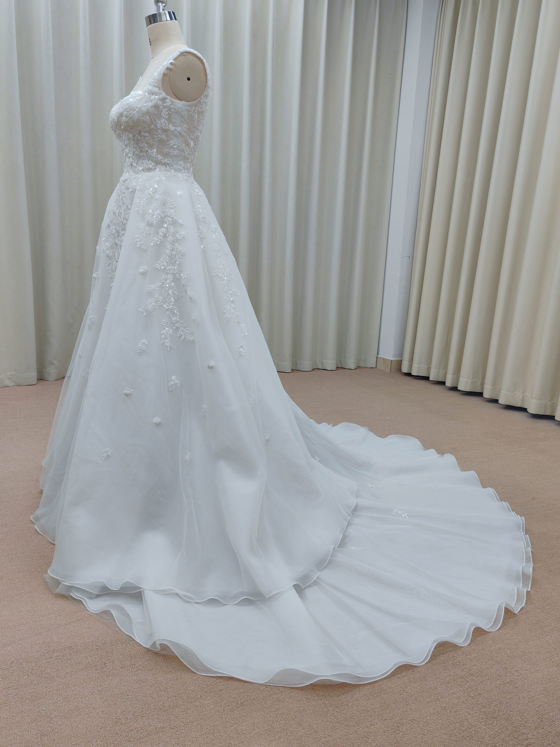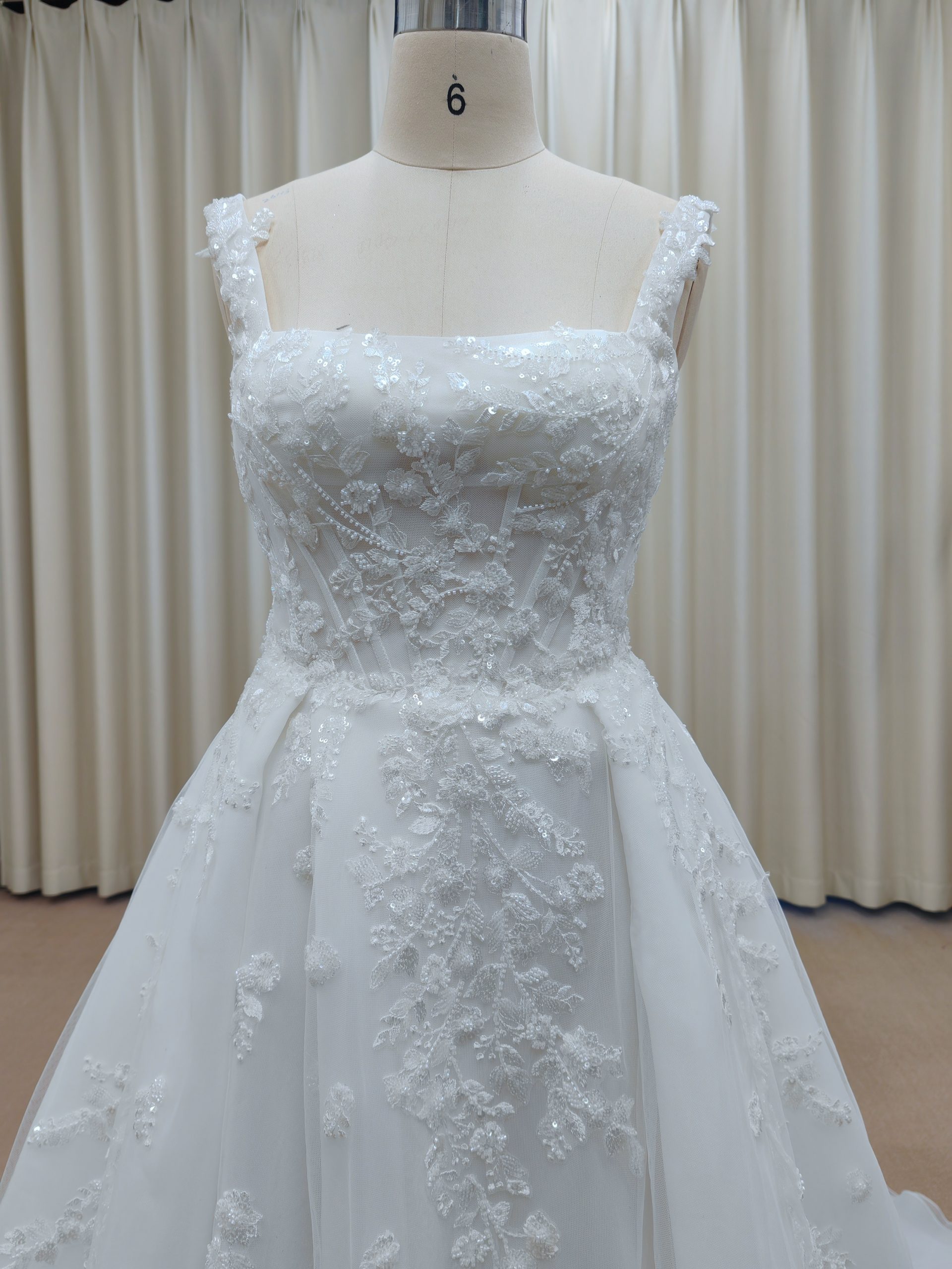 C2025-CPieper – sleeveless square neck flower beaded wedding gown