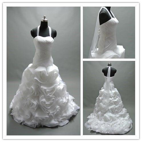 Ruffled wedding gowns with halter necklines