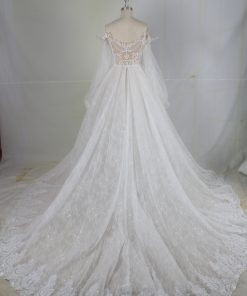 This bishop sleeve fitted wedding dress was inspired by Galia Lahav Thelma. We can recreate this long sleeve bridal dress with any changes you need. For more info on off the shoulder long sleeve wedding gown options please email us directly.
