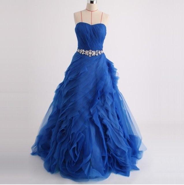 Darius Cordell Fashion is an American company based near Dallas Texas that offers couture formal ball gowns for women of all shapes and sizes. This strapless blue ball gown has a beaded belt on the higher waist. This can be made to be removed if you like or it can be attached. The organza skirt is gathers in various places making for a dramatic effect. You can have this made however you like with any change and in any size.