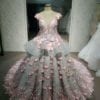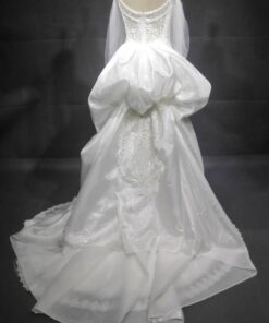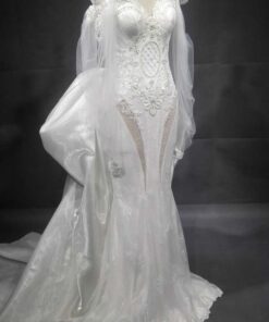 Per a brides request we recreated a less expensive version of the Thelma dress by Galia Lahav. Our version is of course not exactly like the original. But it is similar nad has the same over all feel and look. This sheer long sleeve wedding dress has pretty embroidery detail on the bodice. Customizing this design is not a problem. We can make any changes you need to make it your own. See other haute couture style bridal gown designs in our main catalog.