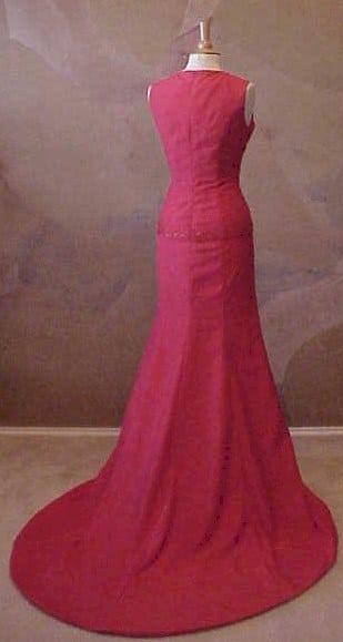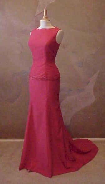 Sleeveless mother of the bride evening dresses like this red one.  This faux 2 piece gown can be made in with any changes in any size.