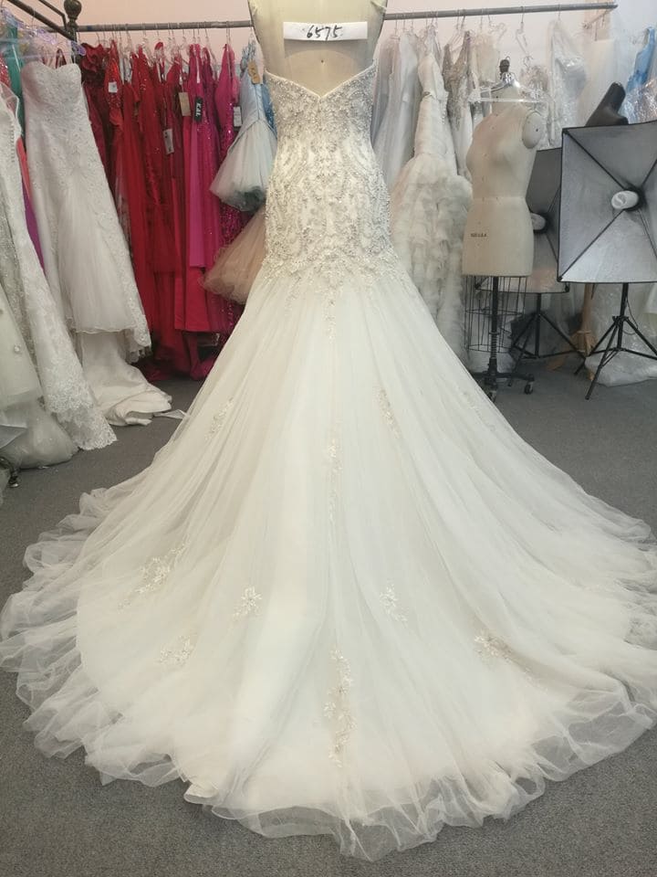 You can have this design customized to your liking in any way. See other fit-and-flare beaded wedding dresses n our main catalog.