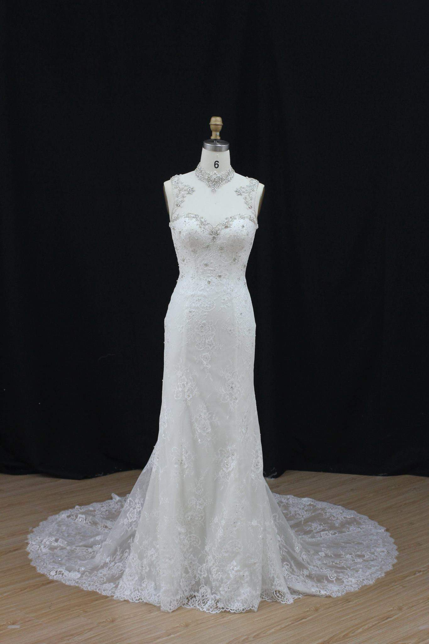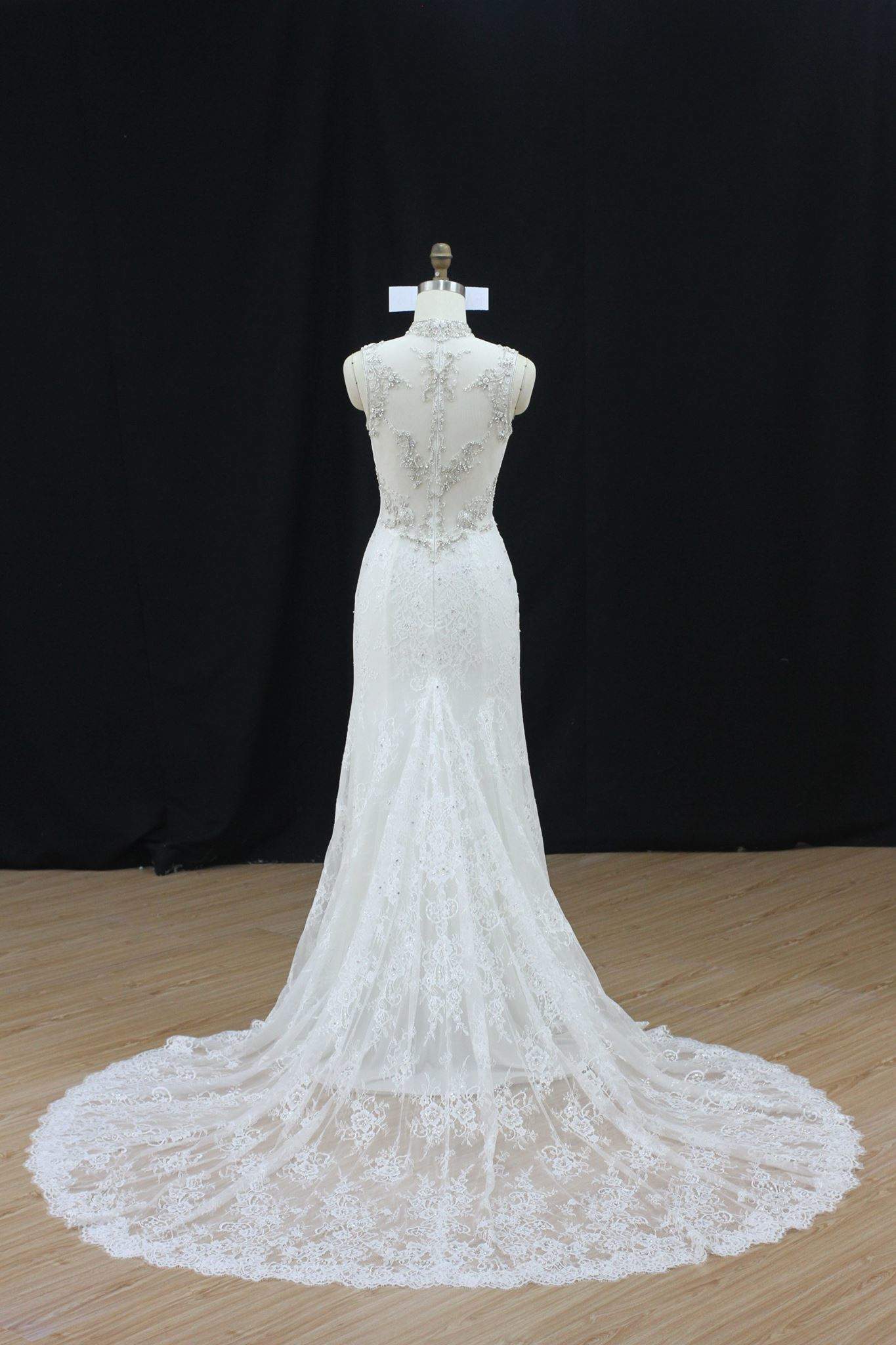 This unique wedding gown hass a nice lace bodice. Adding sleeves or changing the cut is not aproblem. We can accept any changes to any design. To see other illusion neckline bridal dresses use the main catalog.