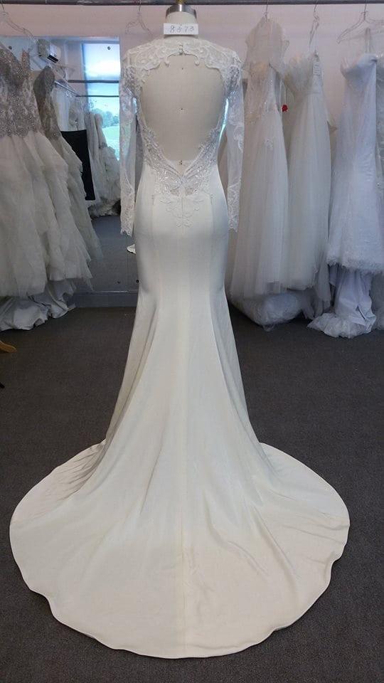 The embllishments on this wedding gown are a stand out. The unique design made with emboidery and lace are sure to please. Brides can modify the cut of this bridal dress in any way. We have many other long sleeve illusion neckline bridal dresses for you to consider.