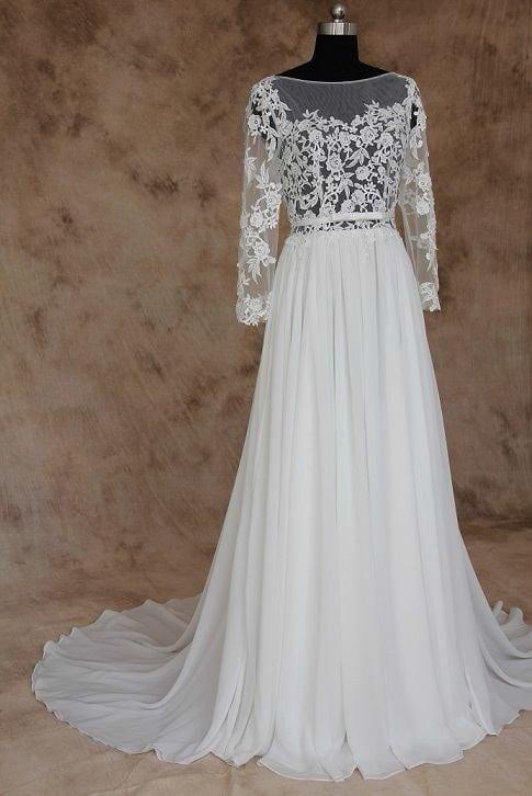 Long Sleeve Wedding Dresses with illusion neckline