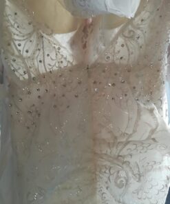 Per a brides request (Maria Piacquadio) we made a replication of this haute couture bridal gown. We had limits with budget and timing. With a higher budget and more time allowed we could have gotten a bit closer to the original. We have many long sleeve wedding dress options in our catalog. We can also make a replica of any couture dress based on your pictures.