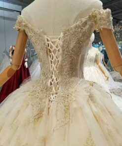 Ornate embellishments are adorned this Princess style bridal dress. The lace up back adds a romantic flavor to this fashion. You can request any modifications you need to the design. For more info on our haute couture wedding gowns please email us directly.