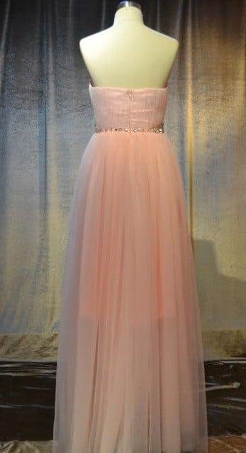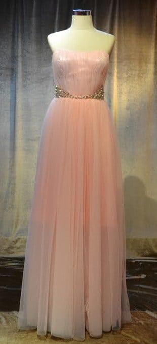 You can find a number of inexpensive plus size evening dresses here at Darius Cordell Fashion Ltd. This pastel pink colored ball gown has gathers on the bodice. They are made in a vertical direction. There is a belted feature on this dress. The beads are carefully sewn on the gown at an angle. We can produce this item in a number of different fabrics to get this same ballgown effect. We can make your dress in any color or with changes if you need them. We also have other inexpensive plus size evening dresses in our collection of attire. All can be made specific to you. Please contact us for more details about your options.