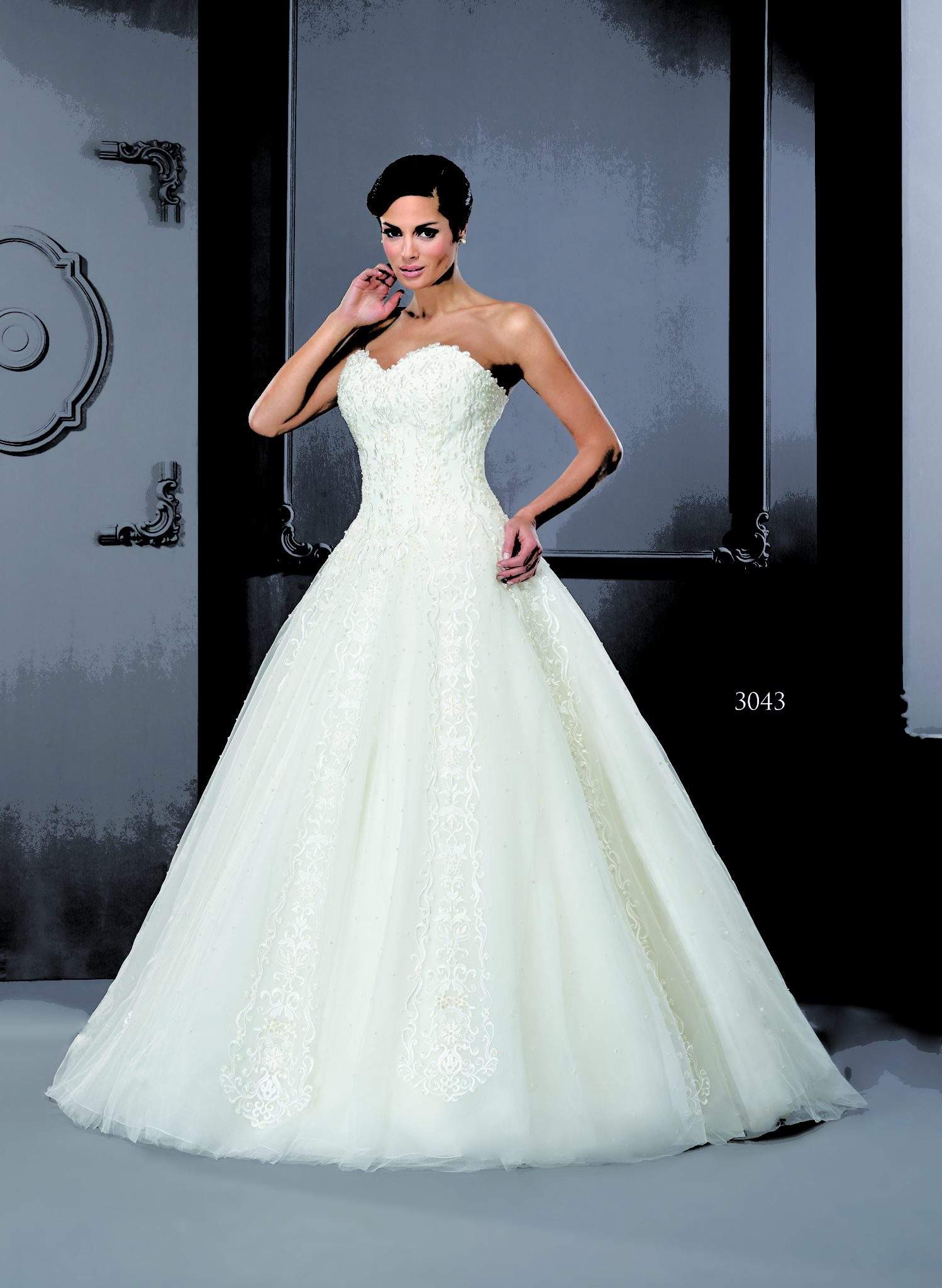 Darius Cordell Fashion Ltd is an American based company that offers brides A-line Wedding Gowns. This style featured on this product page is a very straight and to the point design. It is the traditional wedding ball gown. The neckline is strapless and flattering to most body types. The built in crinoline is perfect for helping this full skirt keep its shape. The tulle and organza fabric is adorned with light beading and some lace details. This lovely bridal gown can be made as shown. you can also have this beautiful creation made with any changes – or in any color. To see more A-line Wedding Gowns please look through our catalog. You can also use the product tags for ease of navigation.
