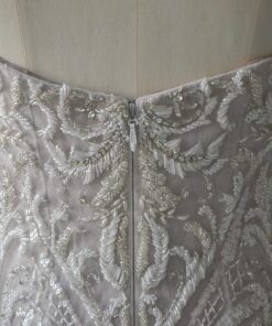 This elegant bridal gown has a fit-and-flare feel. Youc an make chanegs to the design. We can make this dress in any size or measurements you need. You can see other strapless trumpet style wedding dressesin our main catalog.