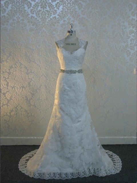 Style #YREMEI6 Belted Lace Wedding Dresses