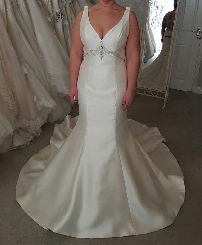 sleeveless plus size wedding gown with empire waist line