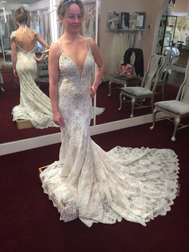 This beaded lace bridal dress has small #crystals on the bodice. Get this #elegant #weddingdress remade as pictured or with any changes. We specialize in #bespoke #wedding #dresses. We can make #inspired #replications bassed on any design you #love. For more info on #custom #weddingdresses please contact us directly.